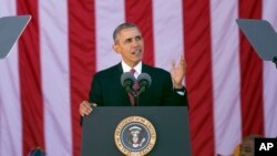 Obama di axaftina wê merasîmê de bang li karsazên Amerîkî kir ku kar bidin leşkerên kevin ku berê li Îraq û Afganistanê şer kirine.