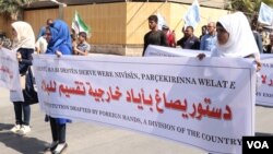 Beşdarên xwepêşandanê xwest ku nameyekê jibo hêzên navneteweyî û Neteweyên Yekbûyî re bişînin ku divê cîhê hemû pêkhateyên Sûrî di nivîsanîna destûra nû de hebe.